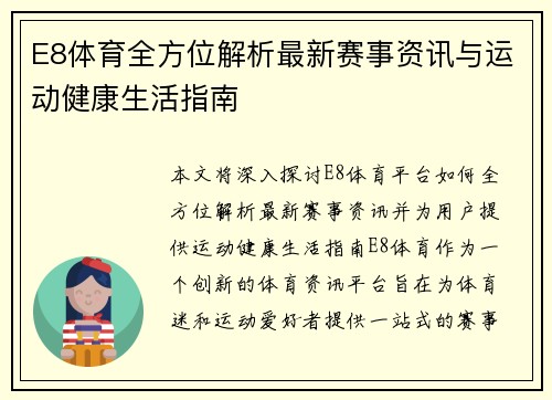 在当今体育娱乐与数字化投资高度融合的背景下,“赢博会体育”逐渐成为众多体育爱好者与理性投资者关注的焦点。本文围绕赛事资讯获取、热门玩法解析、风险控制策略以及长期投资思路四大核心维度,对赢博会体育进行系...